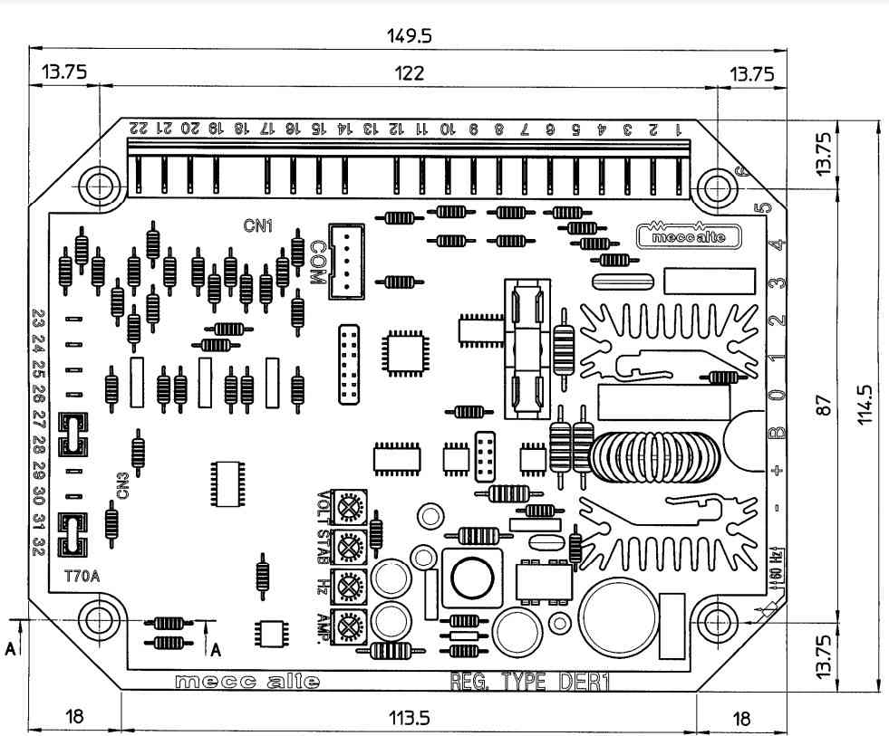 Bộ điều chỉnh điện áp tự động điện tử DER1 Mecc Alte được tạo ra từ nhu cầu phát triển của DSR, DER được hình thành trên các tính năng bổ sung như cảm biến tự động phát hiện một pha hoặc ba pha, tính linh hoạt cao hơn trong điều khiển điện áp từ xa, khởi động mềm và độ chính xác điện áp 0,5% trong điều kiện tĩnh.