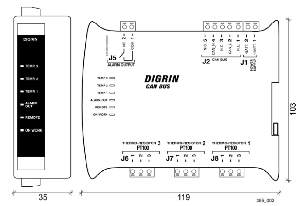 - DIGRIN có sẵn ngay cả trong phiên bản RS485 với giao thức Modbus RTU. Bằng cách đó, có thể hình dung các biện pháp truyền từ PT100 bằng hệ thống giám sát như Mecc Alte hoặc tương tự.
