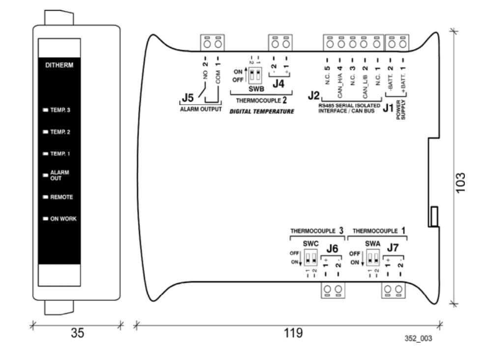 - DITHERM khả dụng ngay cả với RS485 Modbus RTU. Sử dụng phiên bản này, bạn có thể theo dõi các biện pháp của cặp nhiệt điện ngay cả từ xa bằng phần mềm thích hợp Mecc Alte.