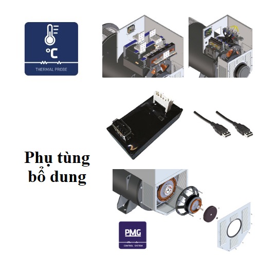 - Thiết bị này, nếu được kết hợp với bộ điều nhiệt (không bao gồm trong nguồn cung cấp Mecc Alte), cho phép đặt nhiệt độ đến giá trị mong muốn mà tại đó toàn bộ hệ thống bảo vệ sẽ hoạt động. Theo yêu cầu, thiết bị PT100 cũng có thể được lắp trên vòng bi để đo nhiệt độ làm việc của chúng.